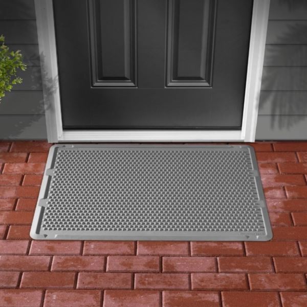 Made in the USA from 100% recyclable material, the WeatherTech OutdoorMat features a specially designed scraper edge combined with semi-rigid cones to remove snow, ice, grass, sand, mud and leaves from shoes. Outer vents surround the edges to allow water to drain and the mat to fully dry. Its sturdy design means OutdoorMat stays in place, even while wiping your feet. Dimensions 24" x 39"Made in the USA
